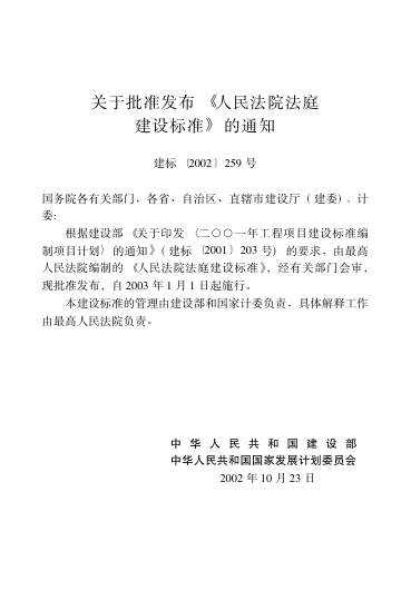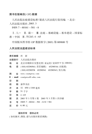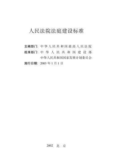 这本由最高人民法院行装局主编、经建设部与国家发展计划委员会联合批准发布的《人民法院法庭建设标准》,是我国司法系统首部系统规范法庭基础设施建设的国家级标准文件,自2003年1月1日起正式施行。
