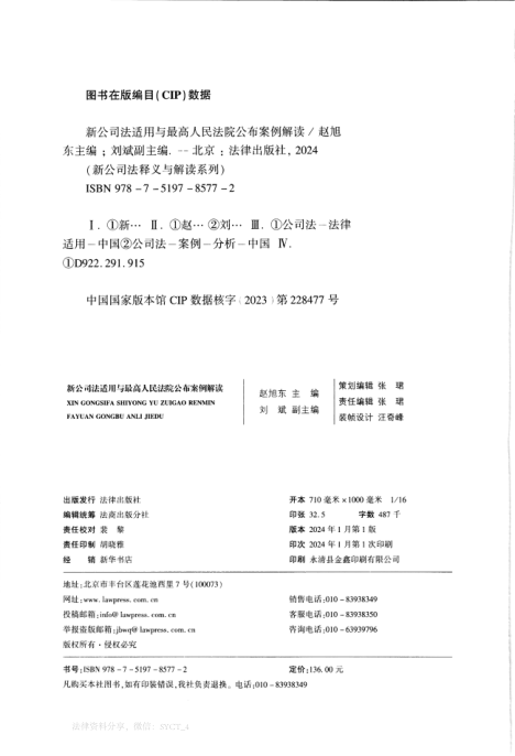 新公司法适用与最高人民法院公布案例解读 202401 赵旭东 主编;刘斌 副主编👈点击保存