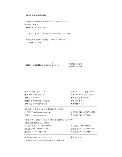 📚这本2008年由法律出版社出版的专著,是国内学界对‘投资条约仲裁’这一新兴争端解决机制的首次系统性研究。作者石慧以扎实的国际法与国际经济法功底,深入剖析该机制在实践中暴露的结构性缺陷(如正当性危机、透明度不足、裁决不一致等),并立足‘国家—市场—全球市民社会’新框架,提出兼顾主权保障、投资者权益与公共利益的重构路径。尤为可贵的是,书中融合法学、政治学、经济学与社会学方法,援引大量ICSID、NAFTA等典型案例及UNCTAD、OECD等机构一手资料,对ICSID机制的商事化倾向、NGO参与可能性等议题作出独到论证。虽成书较早,但其问题意识与理论张力至今仍具启发性,是研习国际投资法、争端解决机制改革不可绕过的经典文本。
