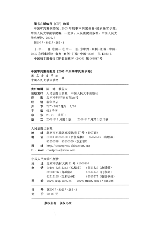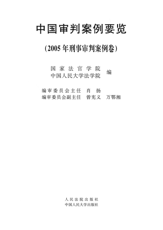 📚 由国家法官学院与中国人民大学法学院联合编纂,人民法院出版社与中国人民大学出版社2006年联合出版的《中国审判案例要览:2005年刑事审判案例卷》,是法学教育、司法实务与学术研究的重要参考资料。