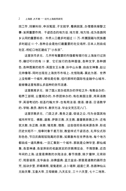 本书以‘房荒’为切口,深入剖析近代上海这一特殊时空下的居住危机与社会结构张力。开篇总序即以恢弘笔触勾勒出上海独一无二的‘多元叠加’图景:三套市政系统、四种司法机构、多国货币并行、七类宗教共存、数十种方言交织……这种行政缝隙与文化叠压,既催生了高度流动的移民社会,也加剧了住房资源的极度紧张与空间分配的深刻不平等。书中并非孤立讨论房价或房源,而是将房荒置于租界体制、人口迁徙、阶层分化、同乡网络与殖民权力博弈的多重脉络中考察,揭示‘居不易’背后是制度性失序与日常生存智慧的激烈碰撞。史料扎实,视角独到,是理解近代中国城市史、社会史与空间政治不可多得的典范之作。
