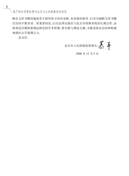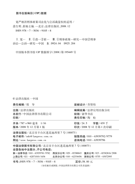 📖 这是一部由北京市检察院苗生明、崔杨主编的实务型理论专著,系《首都检察文库》重要成果之一。全书紧扣2004年提出并逐步深化的‘宽严相济’刑事司法政策,系统探讨其在检察环节的司法化路径,尤其聚焦公诉裁量权这一关键接口——如何在审查起诉中科学把握‘宽’与‘严’的尺度,实现法律效果、社会效果与政治效果的统一。书中融合政策阐释、实证分析与制度反思,既有对‘惩办与宽大相结合’历史脉络的梳理,也回应了转型期犯罪高发、矛盾凸显背景下的司法应对之需。虽出版于2008年,但其关于裁量理性、政策落地与监督制衡的思考,对当前少捕慎诉慎押、认罪认罚从宽等改革仍具扎实的参考价值。