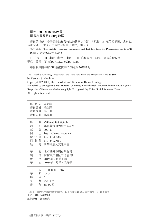 责任的世纪:美国保险法和侵权法的协同 201909 (美) 肯尼斯·S👈点击保存