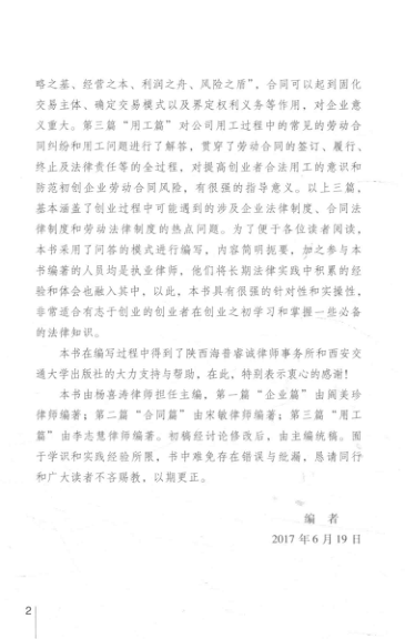 📚 这是一本专为初创者量身打造的法律入门手册!在‘大众创业、万众创新’背景下,本书由陕西资深执业律师团队编写,以清晰直白的‘一问一答’形式,系统梳理创业全周期高频法律问题。全书分三篇:企业篇详解公司/个体户/合伙等组织形式选择与设立流程;合同篇聚焦交易安全,讲透签约、履约与风险防范;用工篇覆盖劳动合同签订、解除、纠纷应对等实操要点。内容源自一线律师经验,不堆砌法条,重在‘看得懂、用得上’,特别适合零基础创业者快速建立法律防线。定价仅21元,性价比极高。