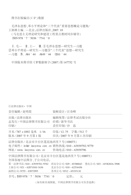 适合作为高校《概论》课程同步练习、研究生入学考试复习及思政教师命题参考。2007年法律出版社首版,经典实用,基础扎实。