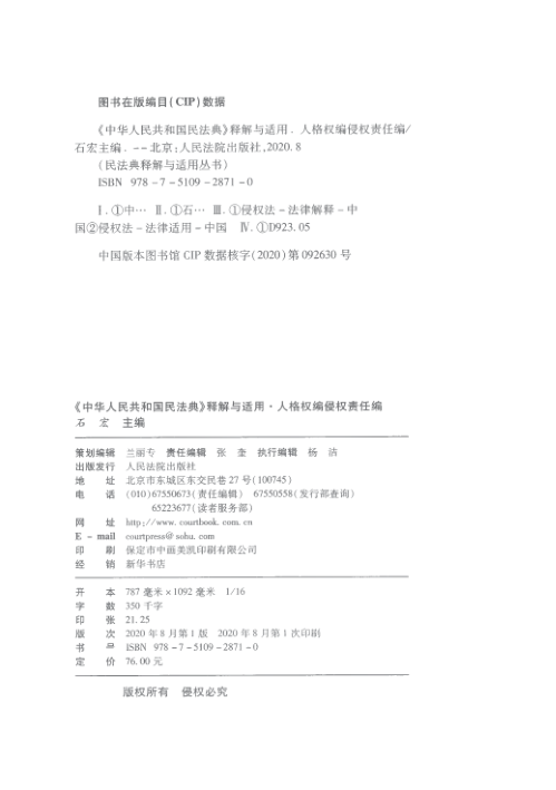 民法典释解与适用人格权编侵权责任编_民法典释解与适用丛书_石宏_人民法院出版社👈点击保存