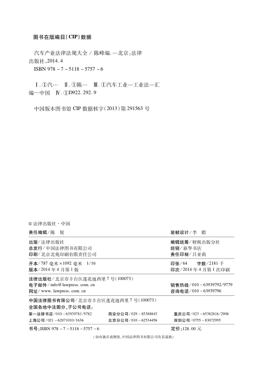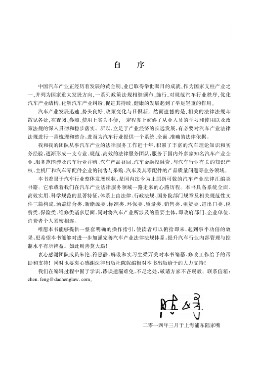 📚 这是国内少有的、专为汽车产业从业者打造的权威法律工具书!由资深汽车法律服务团队陈峰主编,立足十年实务经验,全面梳理2014年前我国涉及汽车产业的法律、行政法规及部门规章——涵盖综合管理、新能源、标准、环保、质量、销售、租赁、进出口、税费、保险、维修等十余类场景,并串联起政府、企业与消费者三方主体。