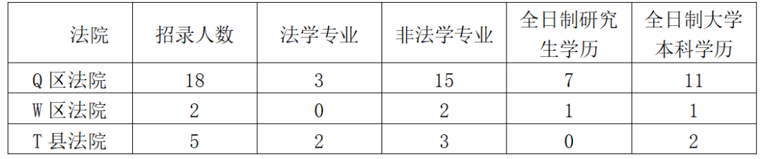 表1 三地基层法院司法体制改革以来司法行政人员招录情况
