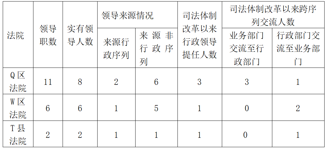 表2 三地基层法院司法体制改革以来行政领导提任及跨序列交流情况