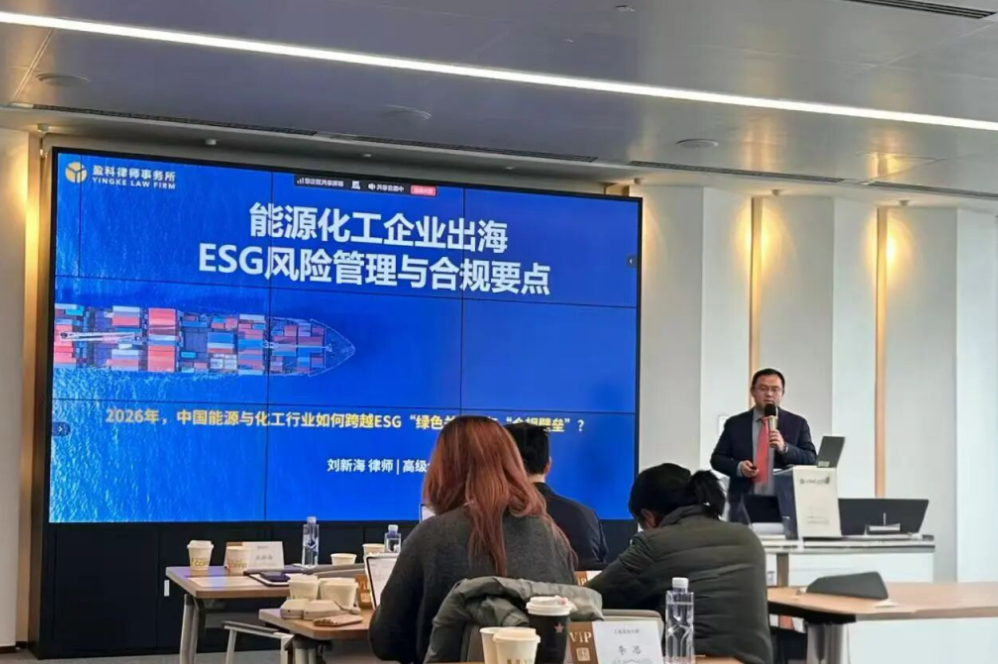 盈科全国碳中和法律专业委员会主任、盈科上海高级合伙人 刘新海 律师开幕致辞,并介绍了 《能源化工企业出海需要关注的ESG风险管理与合规要点》 。他从整体趋势和实务观察角度,对环境、社会责任及公司治理因素在跨境投资、项目开发和持续经营中的影响进行了概括性阐述,并提示企业在海外布局过程中需要更加系统地理解不同法域下的合规要求和监管关注重点。相关分享立足行业实践,谈及ESG已逐步成为影响企业国际形象、融资条件及长期发展的重要因素。这一题切合当前能源化工企业国际化发展的现实需求,对企业在复杂多变的国际环境中识别潜在风险、提升合规意识具有积极意义,现场交流氛围热烈,得到与会嘉宾的一致关注。