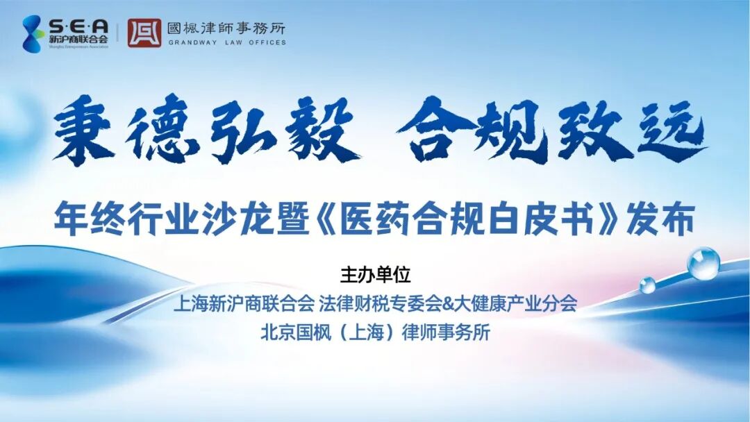 2026年1月28日, “秉德弘毅,合规致远”年终行业沙龙暨《医药合规白皮书》发布 活动在国枫律师事务所上海办公室成功举办。本次活动由 国枫律师事务所 与 上海新沪商联合会 联合主办, 国枫医药健康行业研究委员会、国枫 合规业务组共同承办。 活动汇聚了原监管部门领导、行业专家、企业家、投资机构及法律同仁,各方共同见证白皮书发布,并围绕医药健康产业在强监管时代的合规治理与创新路径展开深度交流。