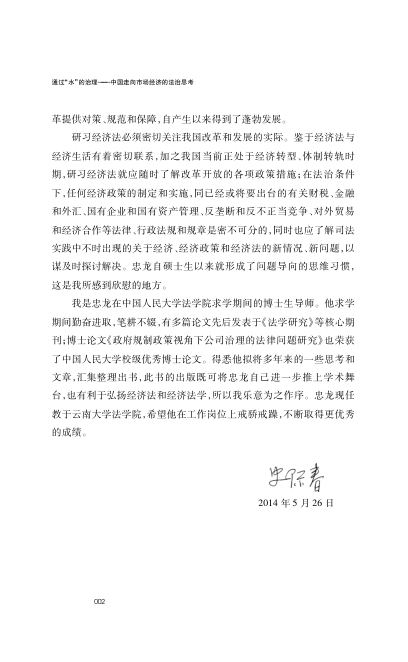 序言中史际春教授点出关键:中国的经济法‘是在改革开放呼唤法治的大环境下应运而生’;而第二篇序更以冷峻笔触揭示‘转型中国法治生活的主角’——不是抽象主体,而是具体的人:面朝黄土的父母、手执宪法的城市子女、生于互联网的孙子。思想扎实,文风清醒,适合关注中国法治演进、经济体制改革与法律社会学交叉议题的读者。