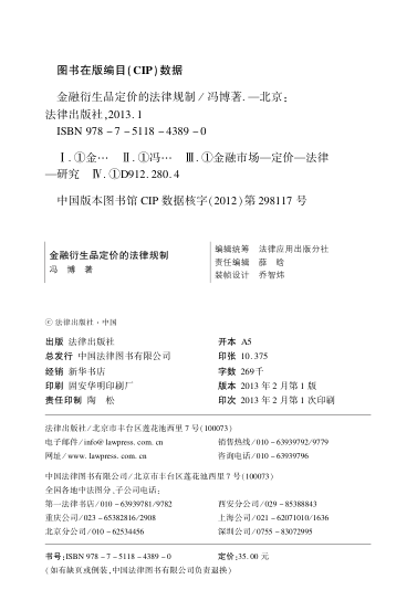 这是一部兼具理论深度与实践关切的法学专著,由冯博博士撰写,法律出版社2013年出版。全书立足中国金融市场发展现实,系统探讨金融衍生品定价过程中涉及的信息披露、公平交易、操纵禁止、合同效力及跨境监管等关键法律问题,填补了国内在‘定价行为法治化’领域的研究空白。作者依托天津财经大学法学与金融交叉学科优势,将金融技术逻辑与法律规制原理有机融合,既回应了‘雷曼事件’后全球对定价透明度的反思,也为我国场外衍生品市场制度建设提供了扎实的学理支撑。适合金融法研究者、监管从业者、合规人员及对金融治理感兴趣的跨学科读者。