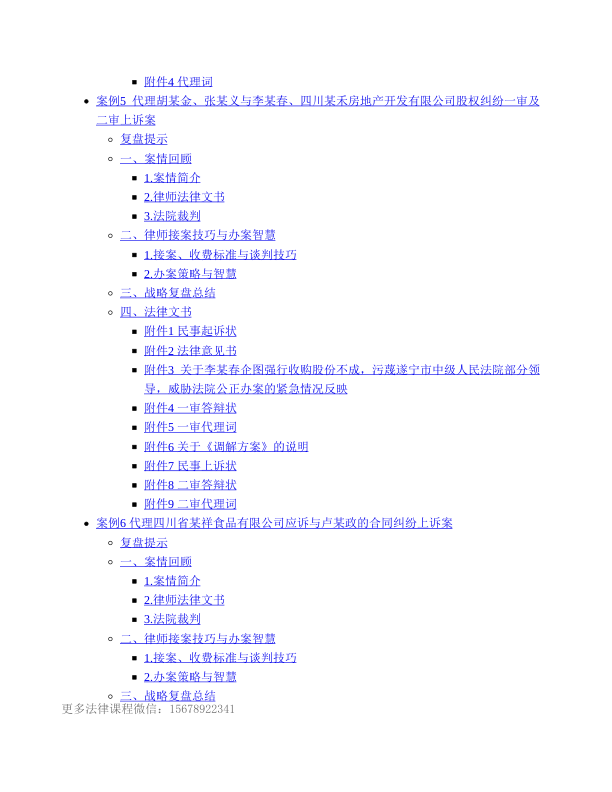 🔹 办案智慧——证据组织、诉讼保全、司法鉴定、审级博弈等实战难点,配起诉状、代理词、判决摘要精要;