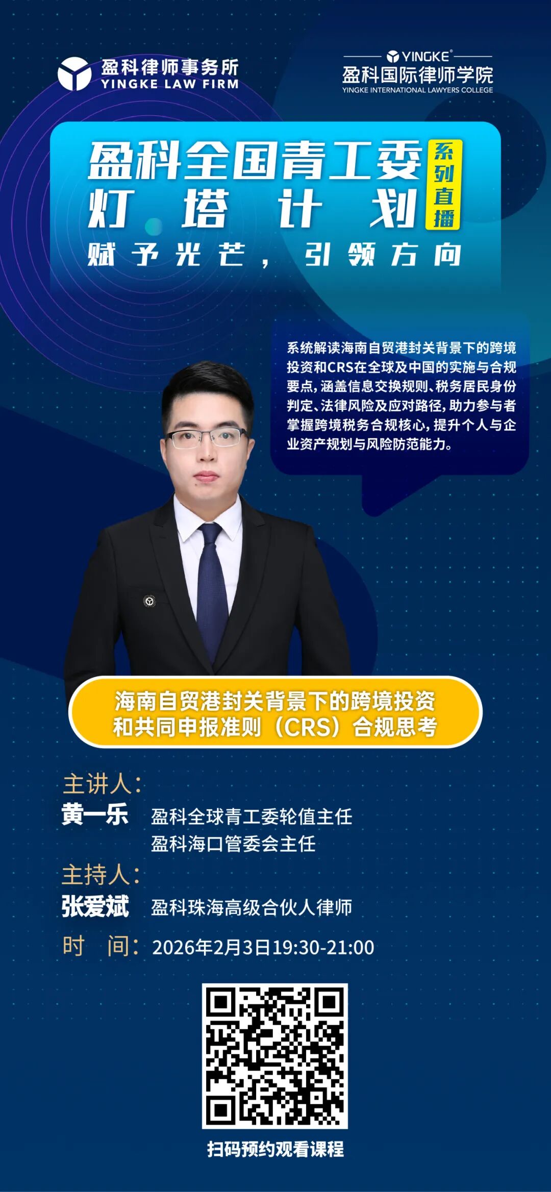 主讲人:黄一乐,盈科全球青工委轮值主任、盈科海口管委会主任