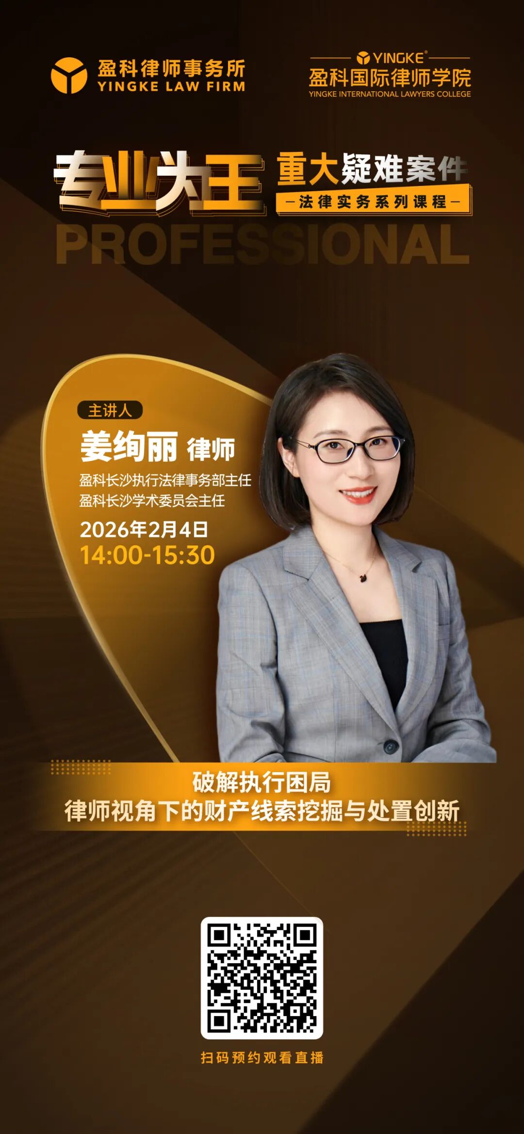 主讲人:姜绚丽,盈科长沙执行法律事务部主任、盈科长沙学术委员会主任