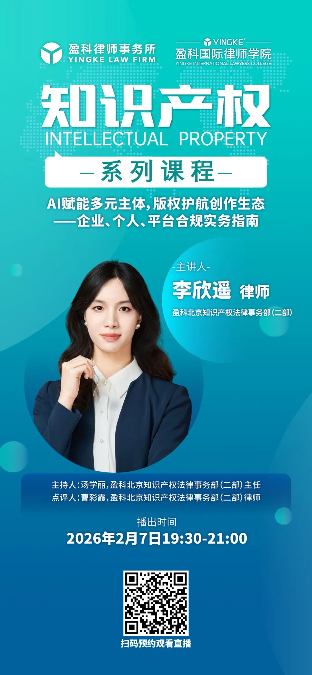 主讲人:李欣遥,盈科北京知识产权法律事务部(二部)律师