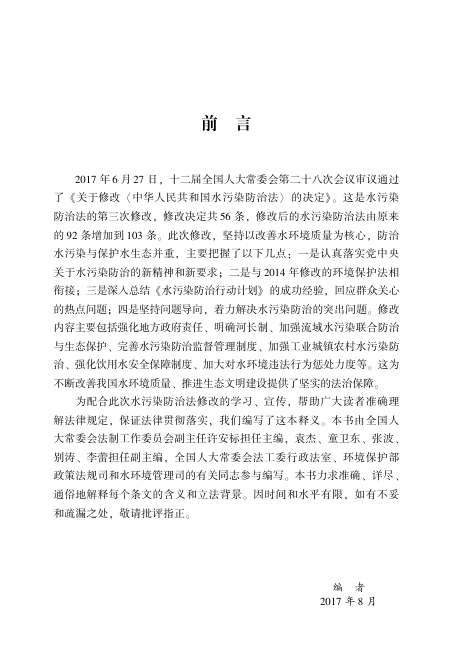 本书逐条解读103个法条,融合立法背景、政策意图与实务关切,兼顾专业性与可读性,特别适合生态环境系统工作者、法律从业者、环境法学研究者及备考公务员/执法资格考试的学习者。前言中清晰阐明修法逻辑:以改善水环境质量为核心,统筹污染防治与生态保护,回应《水十条》实践与公众期待。