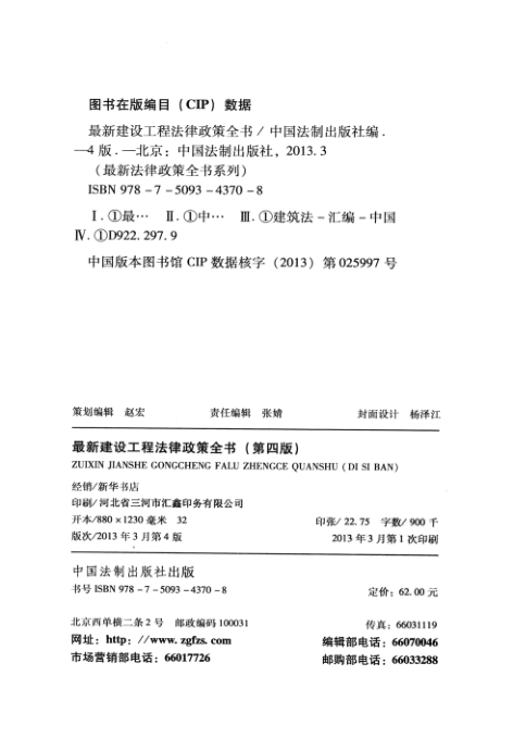 📚这本《最新建设工程法律政策全书(第四版)》由中国法制出版社出版,是面向工程实务、法律服务、政府监管及高校教学的实用型法规工具书。全书系统梳理截至2012年底的建设工程核心法律规范,涵盖《建筑法》《城乡规划法》《合同法》《物权法》等上位法,以及国务院行政法规、住建部规章、司法解释和重要政策文件,并按‘综合’‘招标投标’‘勘察设计’‘施工’‘监理’‘资质管理’等十大专题分类编排,检索便捷、体例清晰。特别适合作为项目经理、法律顾问、招投标专员、监理工程师及备考建造师/监理工程师人员的案头参考。虽出版于2013年,但其收录的588号、628号国务院令等关键修订依据,至今仍是理解制度沿革与实务边界的重要基础。