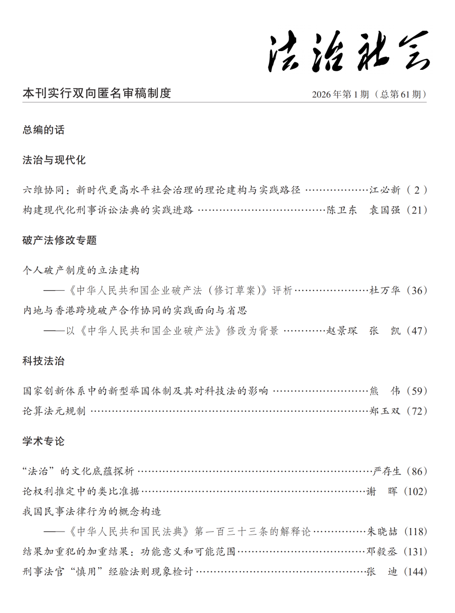 《法治社会》2026年第1期目录及内容提要