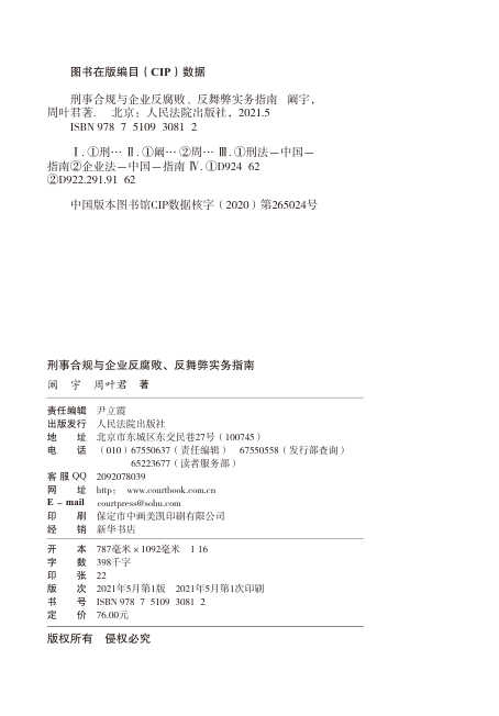 刑事合规与企业反腐败、反舞弊实务指南 阚宇 周叶君👈点击保存