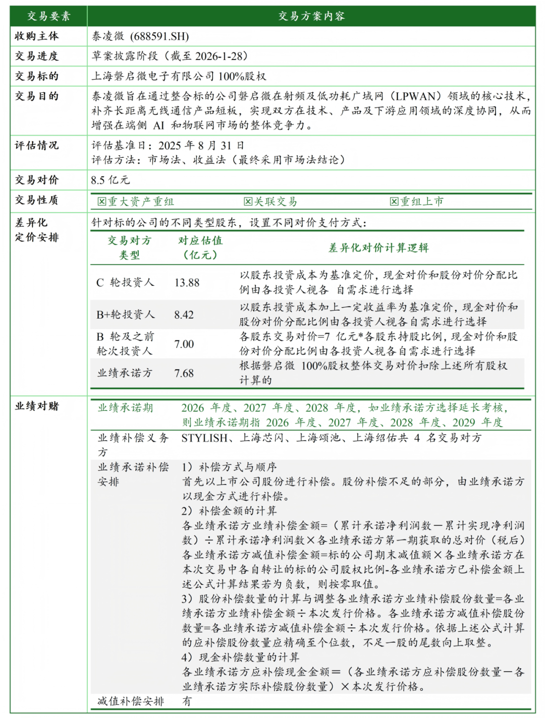 2.泰凌微 (688591) 拟通过发行股份及支付现金方式取得磐启微 100% 股权并募集配套资金
