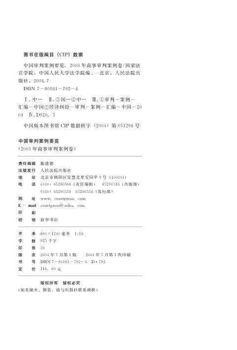 📚 这是一本由国家法官学院与中国人民大学法学院联合编纂的实务型案例汇编,聚焦2003年度全国典型商事审判实例。全书涵盖违反合同纠纷、公司治理、金融债权、代位权行使、债务冲抵效力等核心商事议题,所选案例均经法院终审裁决,附有完整案号、诉辩主张、证据链梳理及裁判说理,极具参考价值。