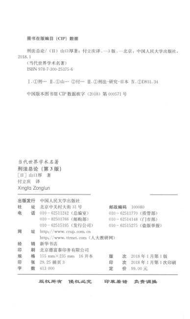 刑法总论 第3版,(日)山口厚著;付立庆译,北京:中国人民大学出版社👈点击保存
